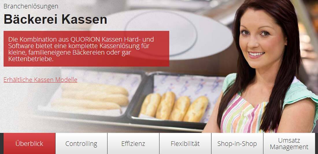 Auch QUORiON bietet Kassensysteme, auf die speziellen Anforderungen in Bäckereien zugeschnitten sind. Bild: Screenshot Webseite QUORiON